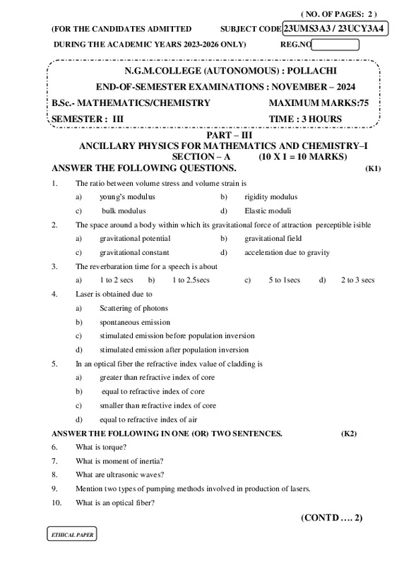 File #3106: "23UMS3A3 23UCY3A4 ANCILLARY PHYSICS FOR MATHEMATICS AND CHEMISTRY–I.pdf"