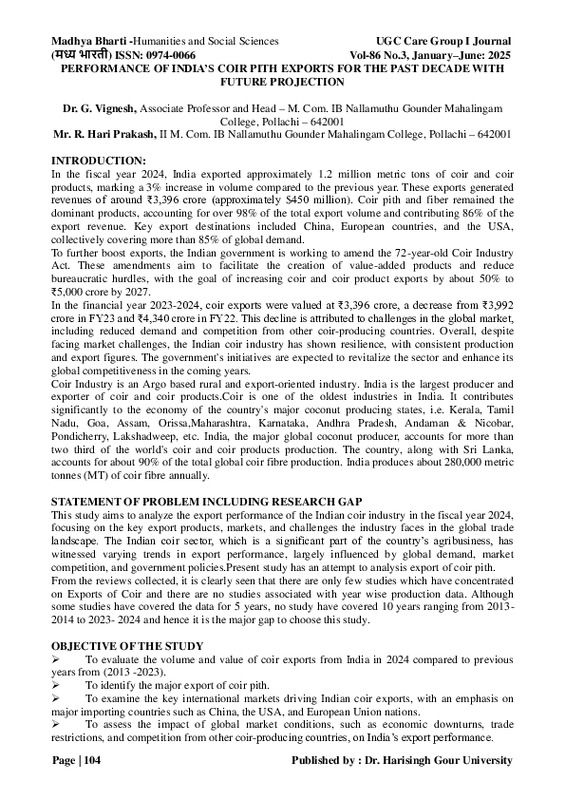 File #3259: "PERFORMANCE OF INDIAS COIR PITH EXPORTS FOR THE PAST DECADE WITH FUTURE PROJECTION.pdf"