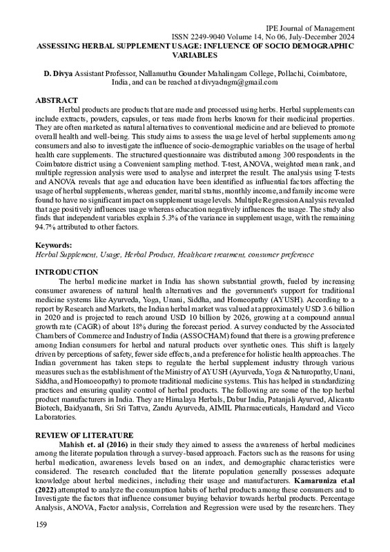 File #3300: "Assessing Herbal Supplement Usage Influence of Socio Demographic Variables.pdf"