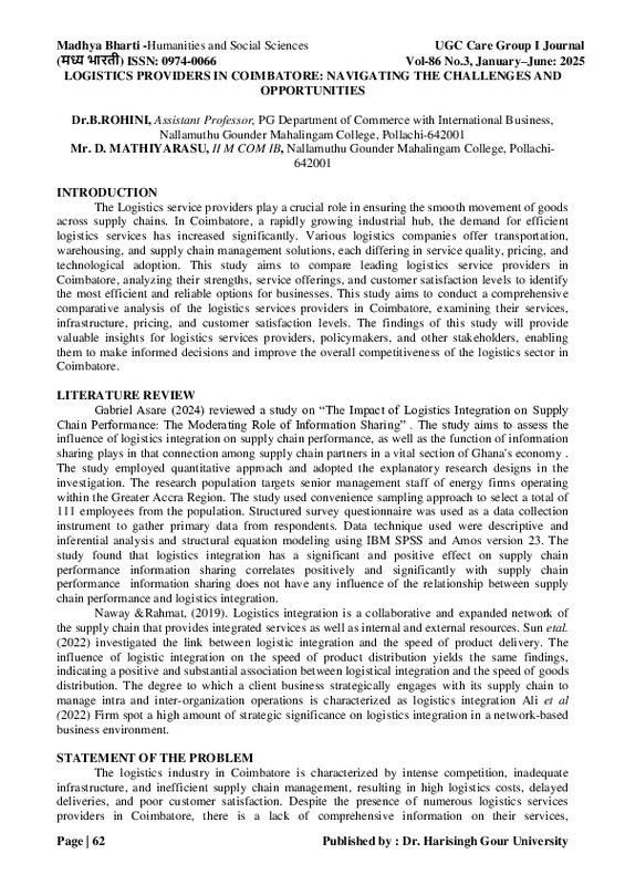 File #3485: "LOGISTICS PROVIDERS IN COIMBATORE NAVIGATING THE CHALLENGES AND OPPORTUNITIES.pdf"