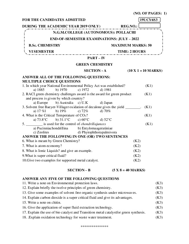 File #352: "19UCY6S3 – GREEN CHEMISTRY.pdf"