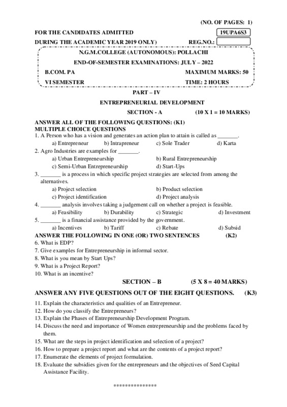 File #359: "19UPA6S3 – Entrepreneurial Development.pdf"