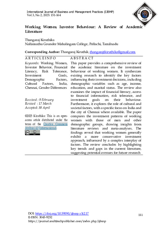 File #3689: "Working Women Investor Behaviour A Review of Academic.pdf"