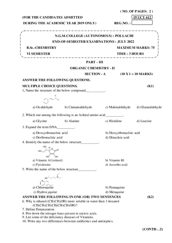 File #37: "19UCY612-ORGANIC CHEMISTRY-II-QP.pdf"
