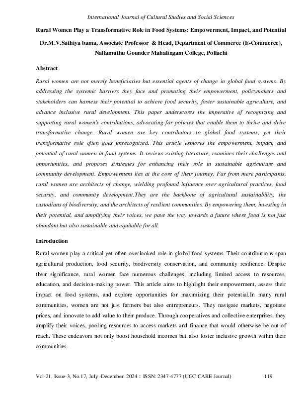 File #3876: "Rural Women Play a Transformative Role in Food Systems Empowerment, Impact, and Potential.pdf"