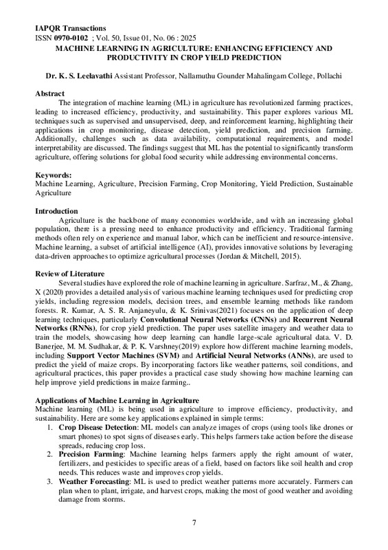 File #3932: "MACHINE LEARNING IN AGRICULTURE ENHANCING EFFICIENCY AND PRODUCTIVITY IN CROP YIELD PREDICTION.pdf"