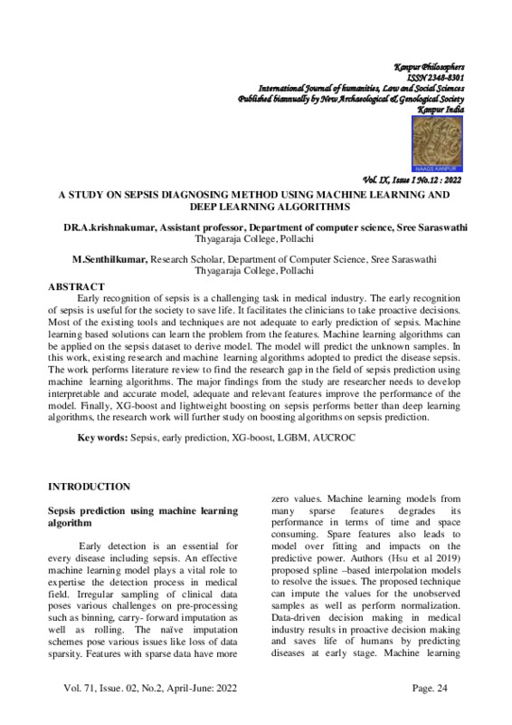 File #400: "A STUDY ON SEPSIS DIAGNOSING METHOD USING MACHINE LEARNING AND.pdf"