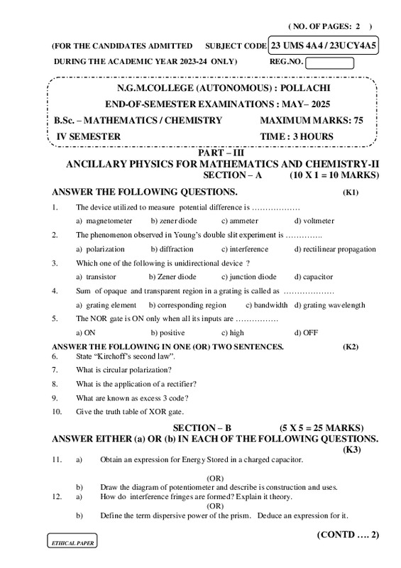 File #4069: "23UMS4A4 23UCY4A5 ANCILLARY PHYSICS FOR MATHEMATICS AND CHEMISTRY-II.pdf"