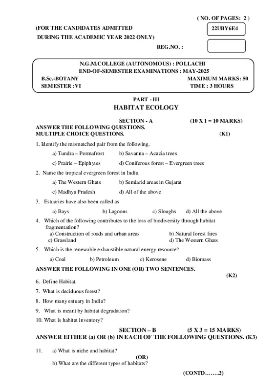 File #4072: "22UBY6E4-HABITAT ECOLOGY - Question paper.pdf"
