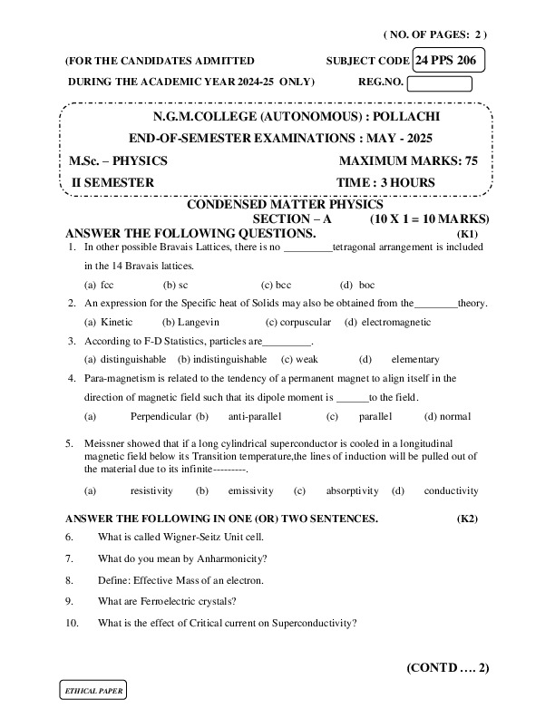 File #4138: "24PPS206 CONDENSED MATTER PHYSICS.pdf"