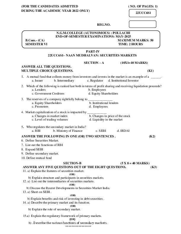 File #4205: "22UCC6S1 NAAN MUDHALVAN SECURITIES MARKETS.pdf"