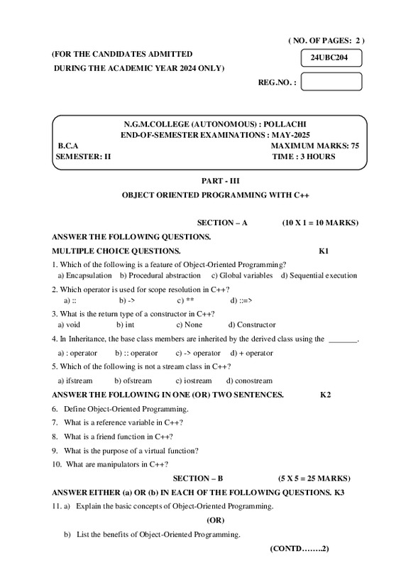 File #4225: "24UBC204 TITLE OBJECT ORIENTED PROGRAMMING WITH C++.pdf"