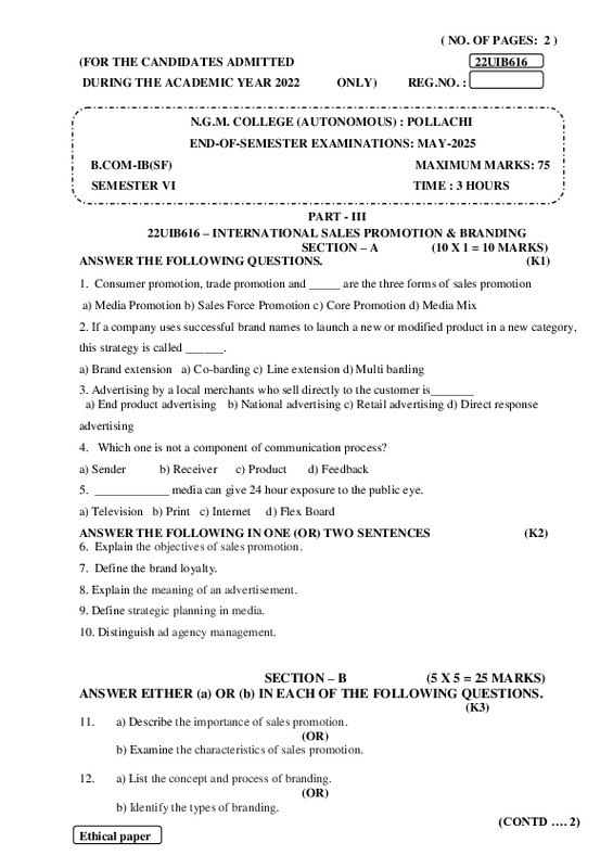 File #4270: "22UIB616 – INTERNATIONAL SALES PROMOTION & BRANDING-QP.pdf"