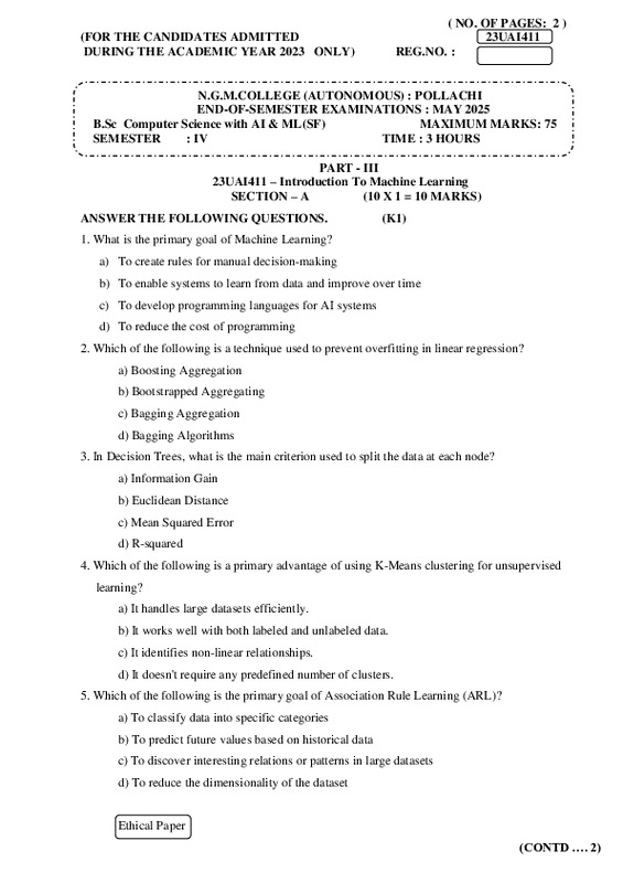 File #4281: "23UAI411 – Introduction To Machine Learning.pdf"