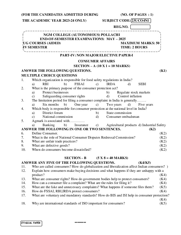 File #4322: "23UCO4N1 (Aided) CONSUMER AFFAIRS.pdf"