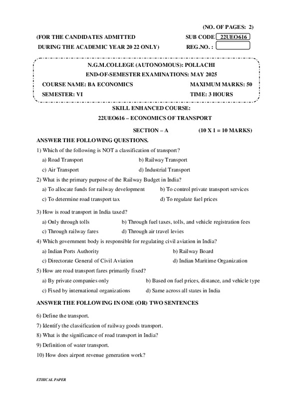 File #4347: "22UEO616 – ECONOMICS OF TRANSPORT.pdf"