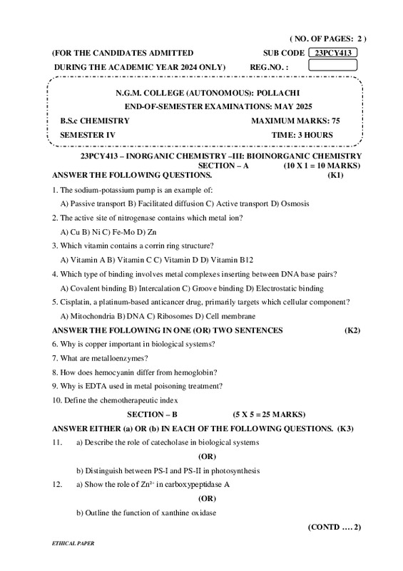 File #4391: "23PCY413 - INORGANIC CHEMISTRY –III BIOINORGANIC CHEMISTRY.pdf"