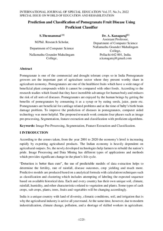 File #496: "Prediction and Classification of Pomegranate Fruit Disease Using Proficient Classifier.pdf"