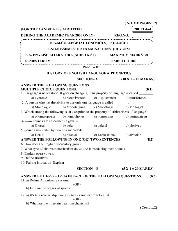 File #5: "20UEL4A4 - HISTORY OF ENGLISH LANGUAGE & PHONETICS.pdf"