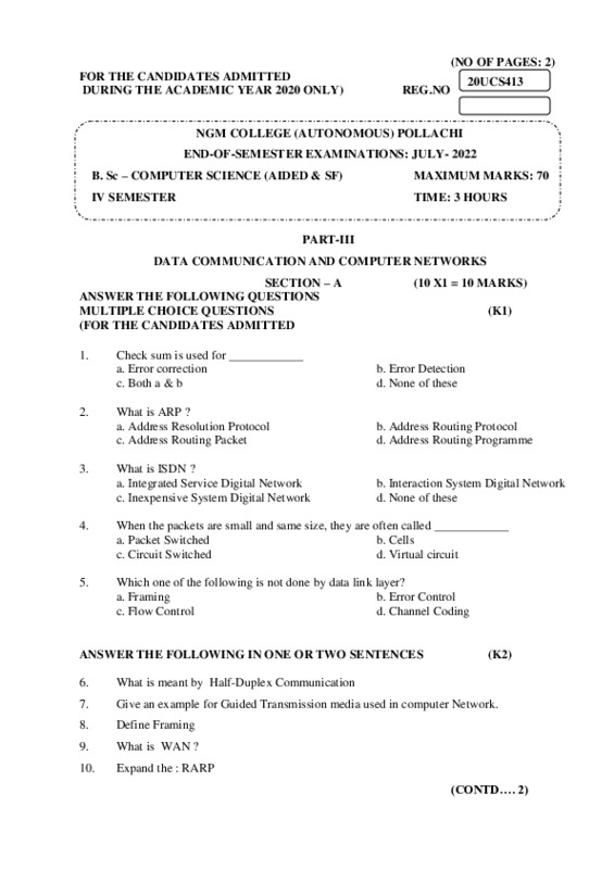 File #60: "20UCS413 – DATA COMMUNICATION AND COMPUTER NETWORKS.pdf"