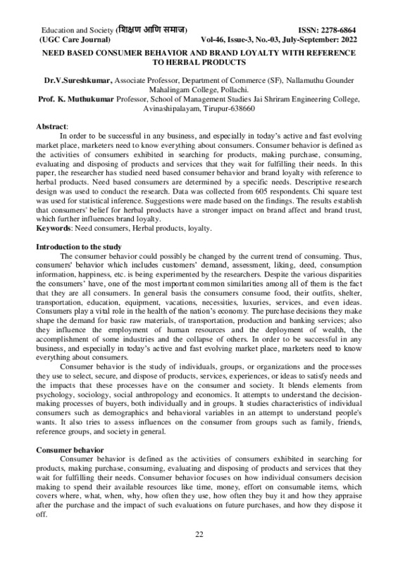 File #626: "NEED BASED CONSUMER BEHAVIOR AND BRAND LOYALTY WITH REFERENCE.pdf"