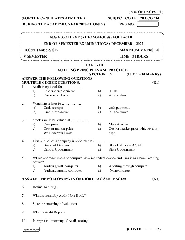 File #709: "20UCO514 - AUDITING PRINCIPLES AND PRACTICE.pdf"