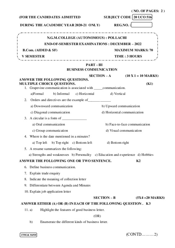 File #711: "20UCO516 - BUSINESS COMMUNICATION.pdf"