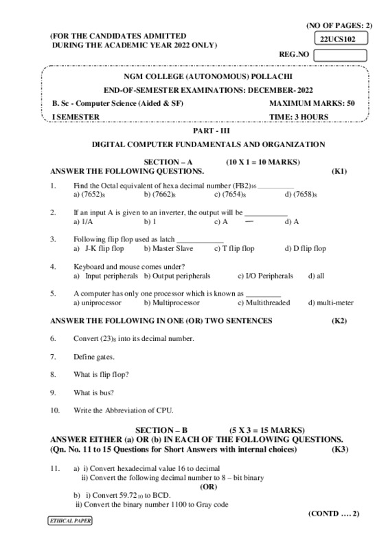 File #714: "22UCS102-DIGITAL COMPUTER FUNDAMENTALS AND ORGANIZATION.pdf"