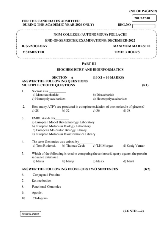 File #731: "20UZY510-BIOCHEMISTRY AND BIOINFORMATICS.pdf"
