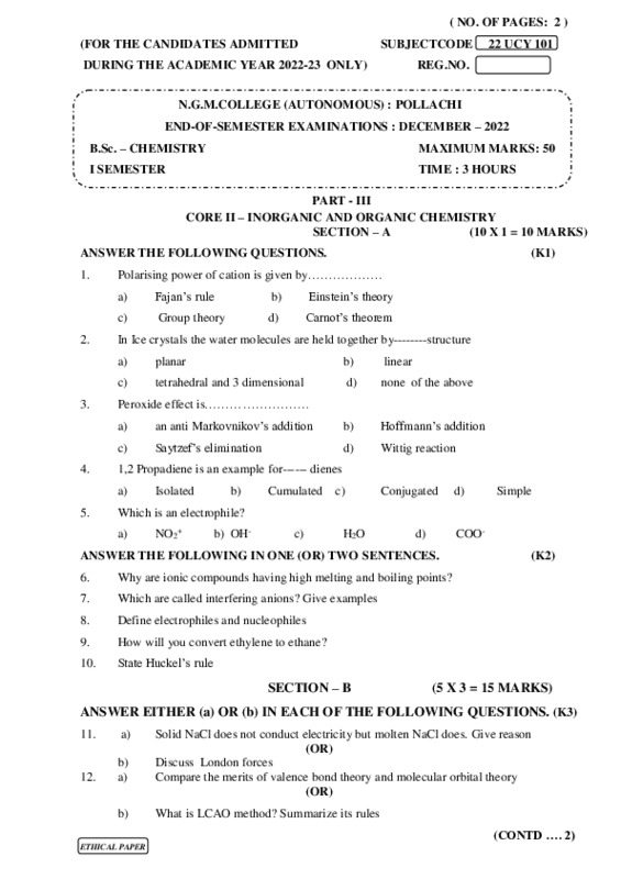 File #734: "22UCY101 – INORGANIC AND ORGANIC CHEMISTRY.pdf"
