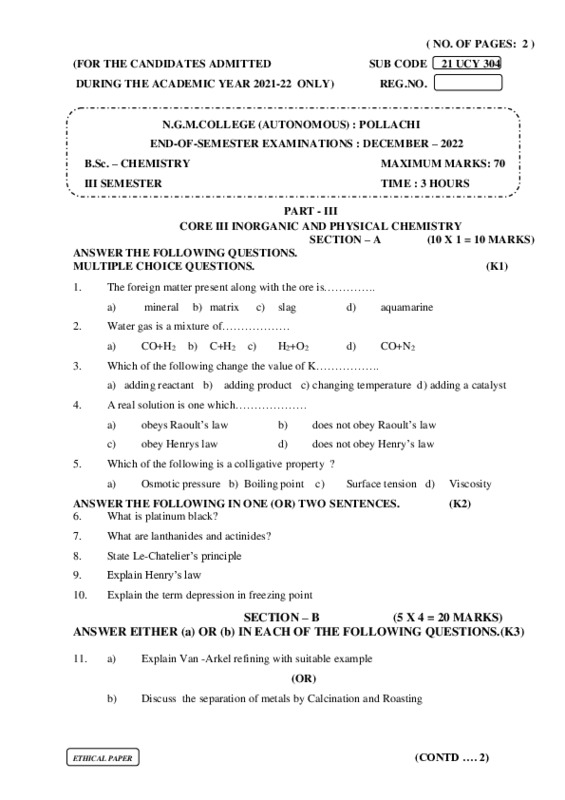 File #736: "21UCY304 - INORGANIC AND PHYSICAL CHEMISTRY.pdf"