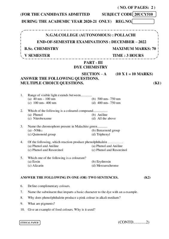 File #737: "20UCY510 - DYE CHEMISTRY.pdf"