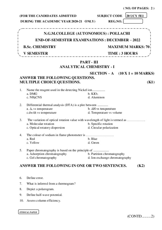 File #741: "20UCY5E1 - ANALYTICAL CHEMISTRY - I.pdf"