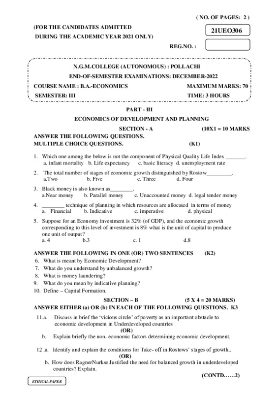File #746: "21UEO306-ECONOMICS OF DEVELOPMENT AND PLANNING.pdf"