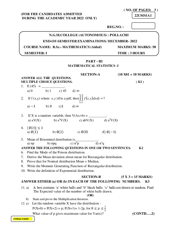 File #757: "22UMS1A1-MATHEMATICAL STATISTICS -I.pdf"