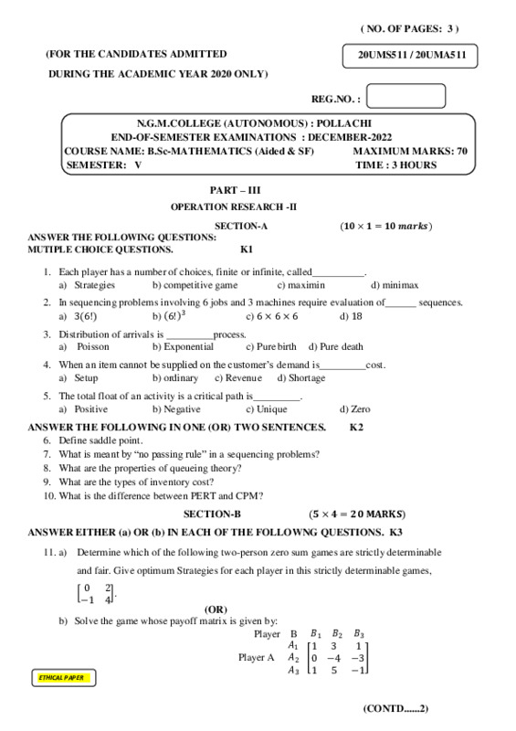 File #766: "20UMS511-OPERATION RESEARCH -II.pdf"