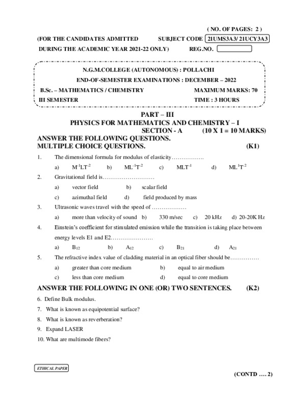 File #774: "21UMS3A3,21UCY3A3 - PHYSICS FOR MATHEMATICS AND CHEMISTRY – I.pdf"