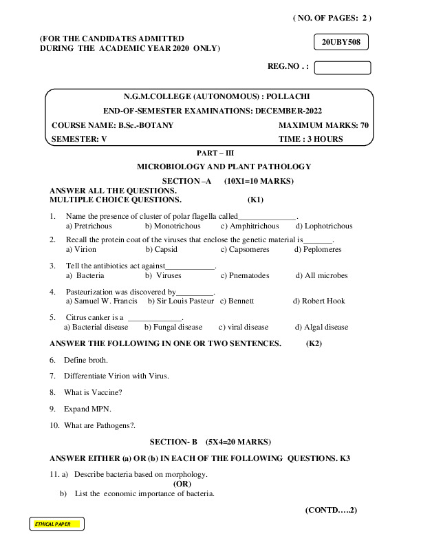 File #785: "20UBY508 - MICROBIOLOGY AND PLANT PATHOLOGY.pdf"