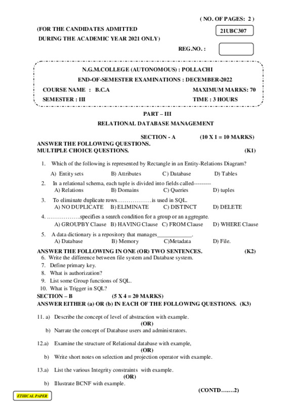 File #812: "21UBC307-RELATIONAL DATABASE MANAGEMENT.pdf"