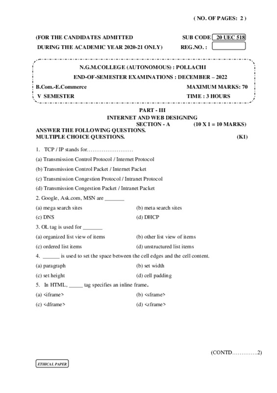 File #841: "20UEC518 - INTERNET AND WEB DESIGNING.pdf"