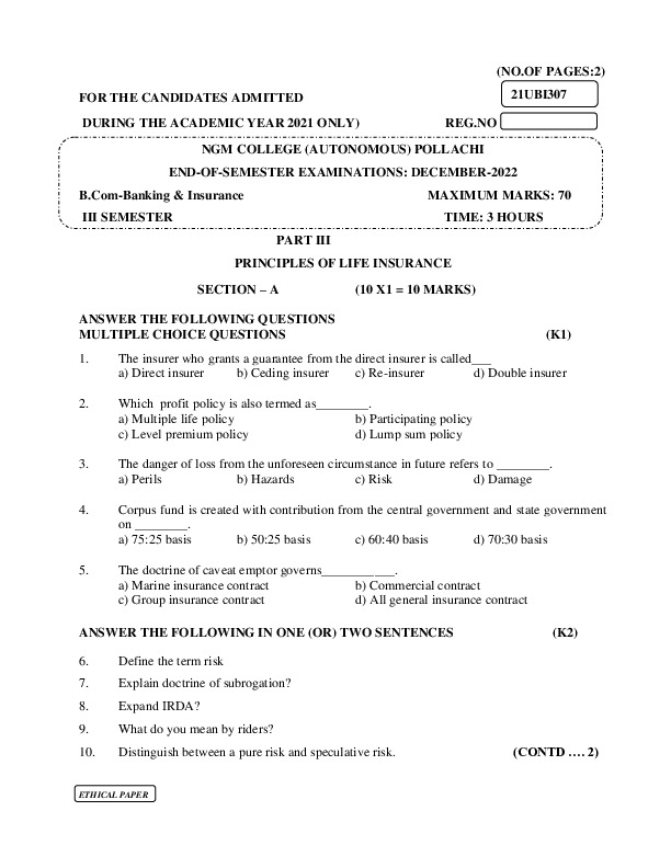 File #848: "21UBI307-PRINCIPLES OF LIFE INSURANCE.pdf"