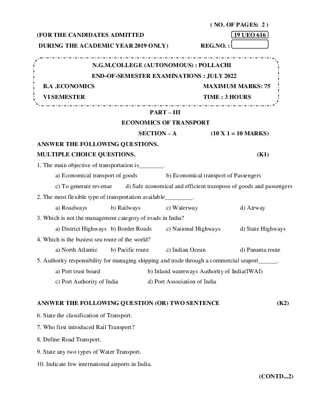 File #88: "19UEO616-ECONOMICS OF TRANSPORT-QP.pdf"