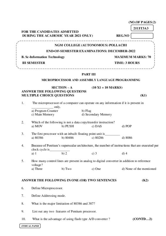 File #898: "21UIT3A3-MICROPROCESSOR AND ASSEMBLY LANGUAGE PROGRAMMING.pdf"
