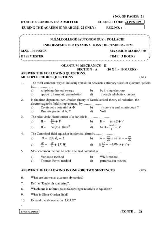 File #950: "21PPS309 QUANTUM MECHANICS – II.pdf"