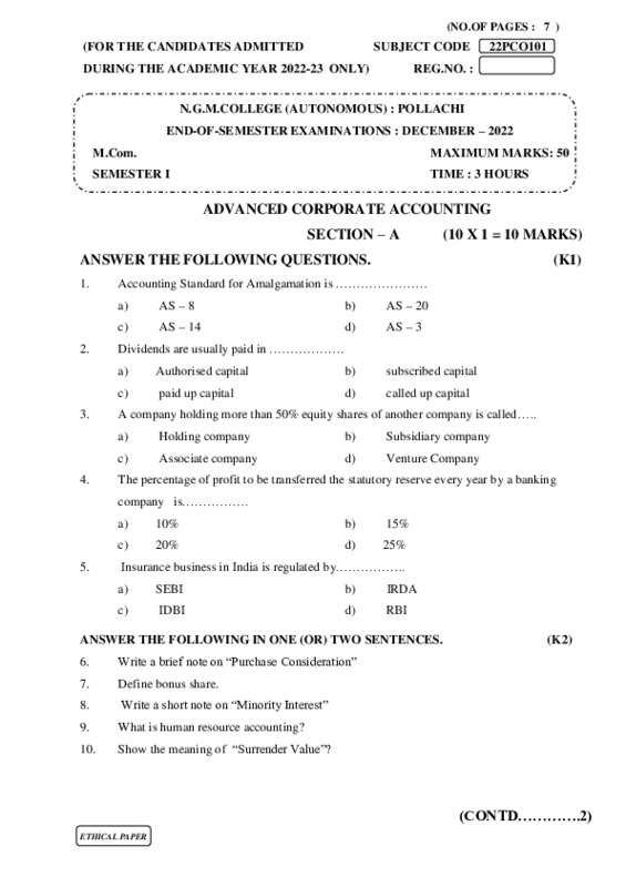 File #953: "22PCO101 ADVANCED CORPORATE ACCOUNTING.pdf"