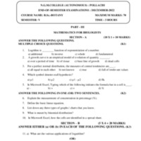 20UBY511-MATHEMATICS FOR BIOLOGISTS