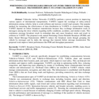 PORTIONING CLUSTER RELIABLE BROADCAST (PCRB) THROUGH INDEX BASED MESSAGE -TRANSMISSION (IBM-T) TO AVOID COLLISION IN VANET