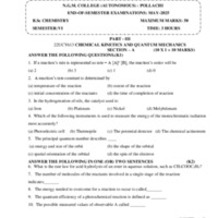22UCY613 CHEMICAL KINETICS AND QUANTUM MECHANICS