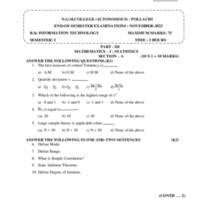 23UIT1A1 - MATHEMATICS – I STATISTICS
